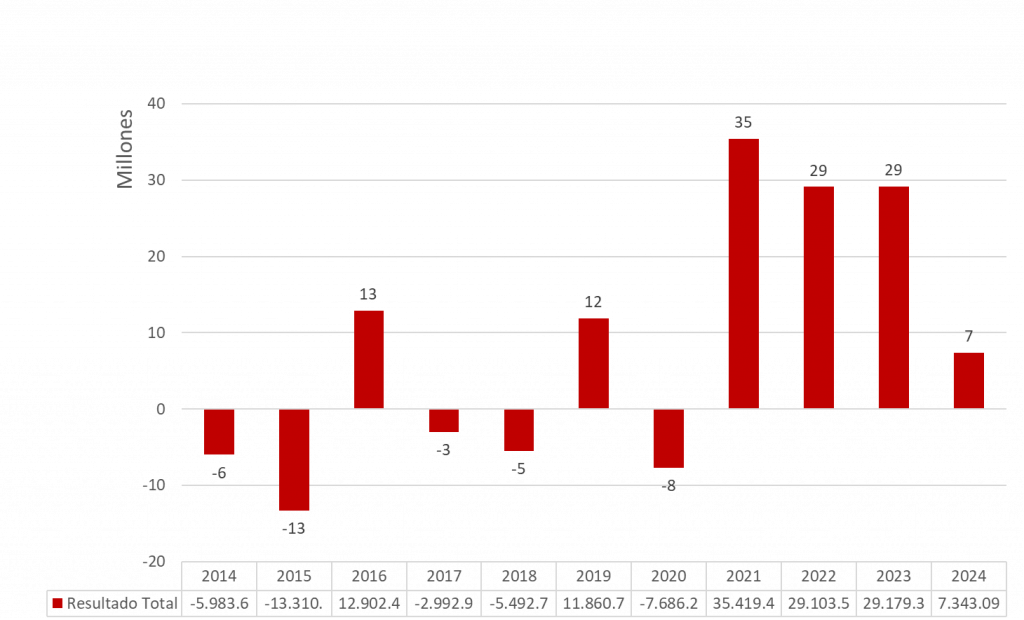 Y tras introducir esas desviaciones en el balance, los resultados definitivos son los que se muestran mediante las barras de color amarillo en la Figura 4. Como se puede observar, salvo en 2015 y 2020, el resultado ha sido en todos los casos positivo, especialmente en los últimos cuatro años.