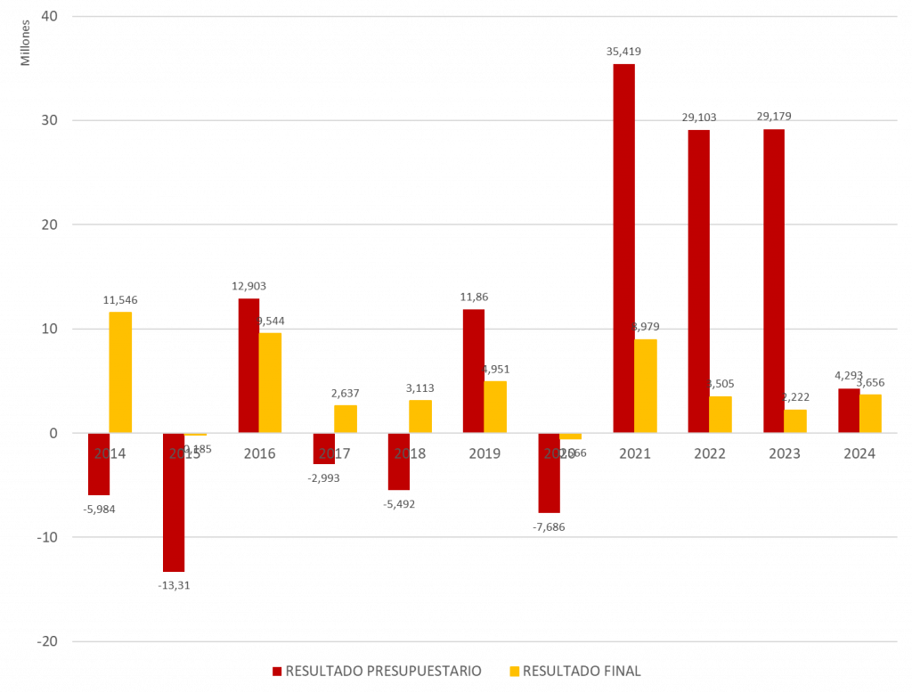 Por otro lado, como se puede comprobar en la Figura 2, las liquidaciones de los presupuestos arrojan, desde 2021, resultados positivos.