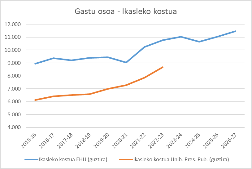 Gastua ikasle kopuruaren arabera adieraztea da konparazioak egiteko beste modu bat. Azken finean, ikasleak dira unibertsitate-jardueraren berehalako hartzaileak. Ikerketa bera ere irakaskuntza-jarduerari lotuta dago, eta jarduera horren hartzaileak, esan bezala, haiek dira.