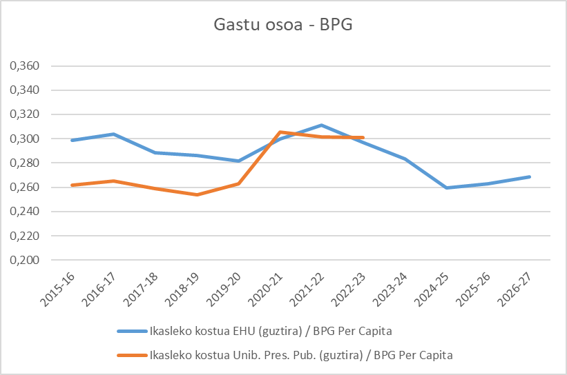 Unibertsitateko gastu publikoa, BPGren ehuneko gisa